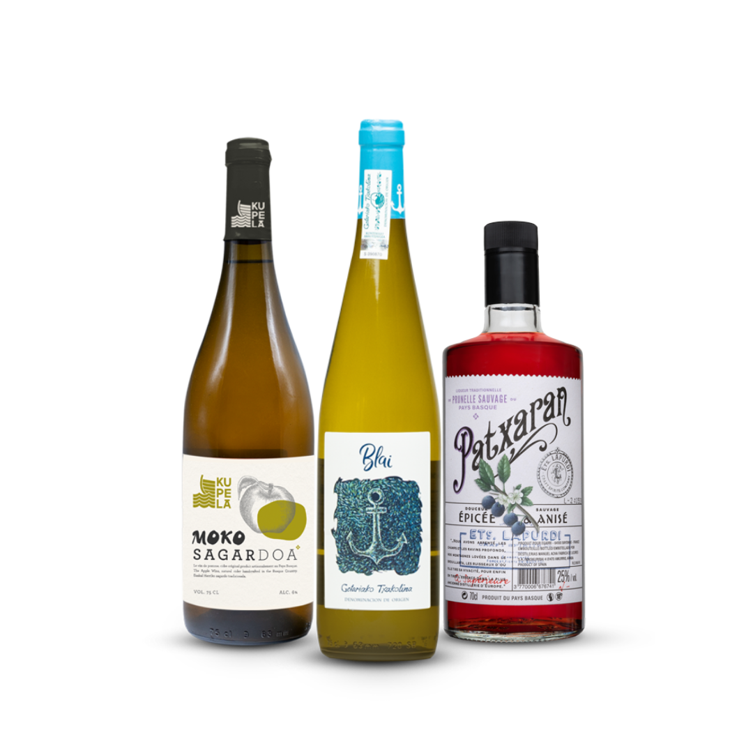 Des boissons emblématiques qui racontent l'histoire basque, parfaites pour les amateurs de découvertes gustatives ou en cadeau pour partager la culture locale. Une expérience sensorielle complète qui capture l'âme basque en un seul pack. Le vin de pomme ou cidre basque, le mythique vin pétillant Txakoli et enfin la liqueur ou apéritif basque Patxaran, produit à base de prunelles sauvages.