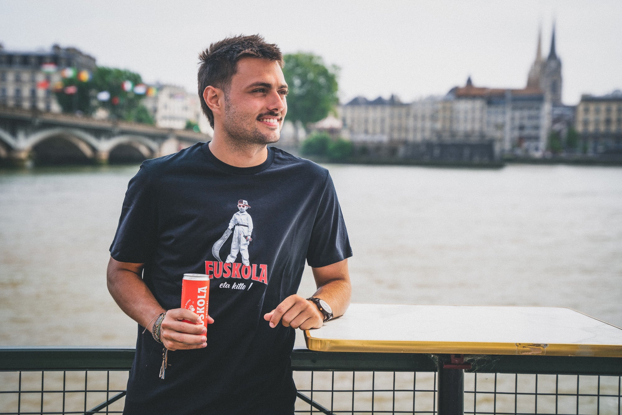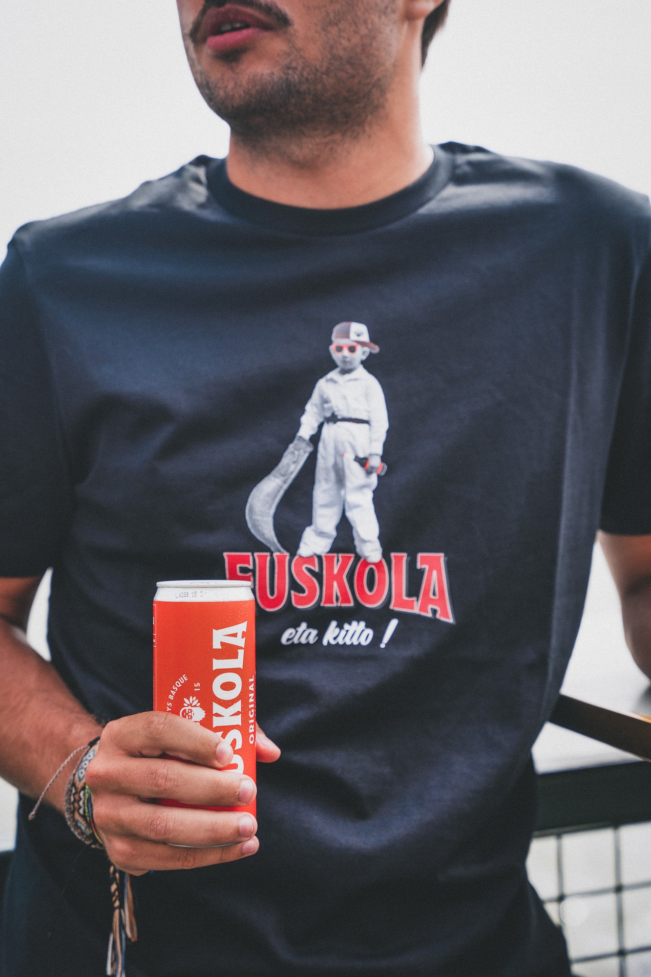 Le cola artisanal basque Euskola collabore avec la marque basque EZ KEXA avec ce Tshirt "Euskola ta kitto!" qui se traduit par "Euskola et c'est tout !".