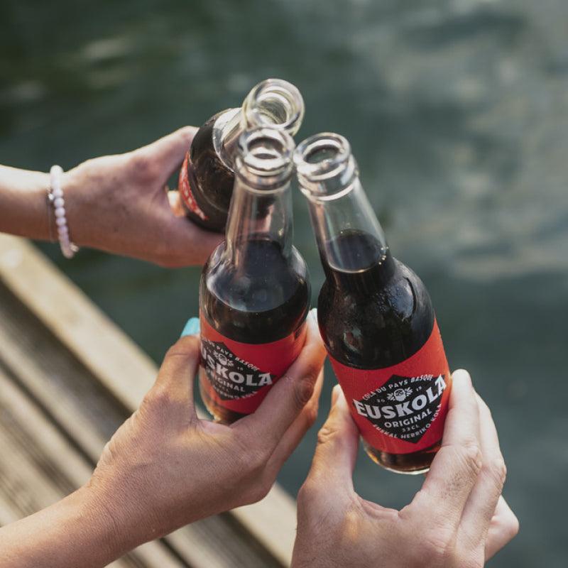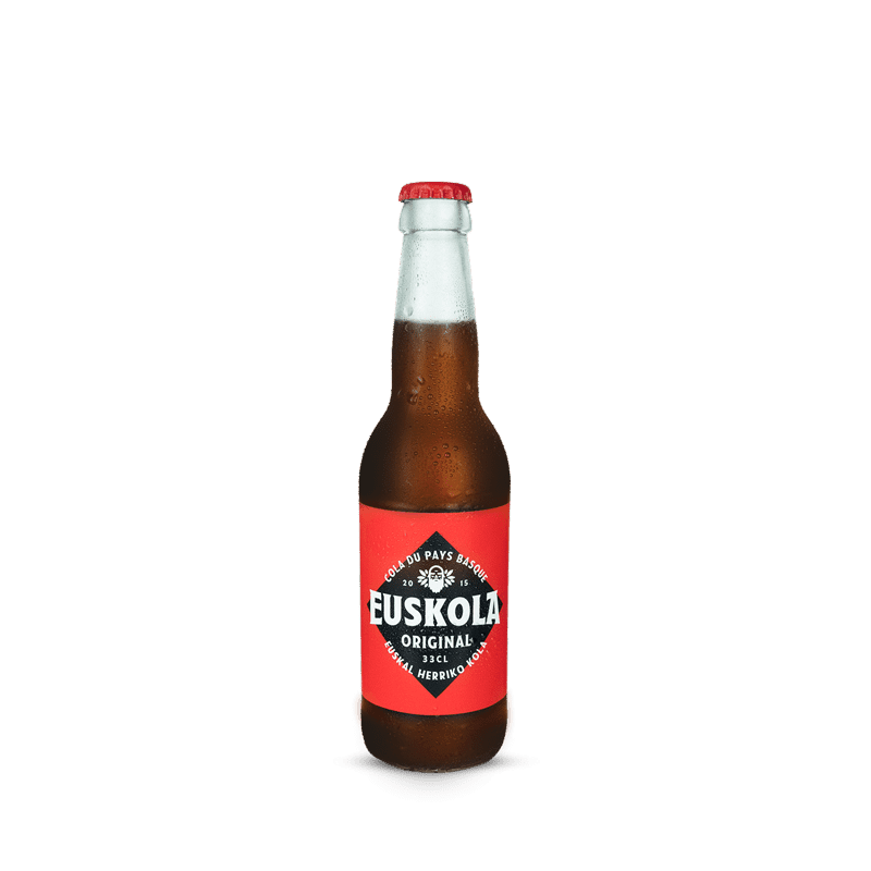 EUSKOLA, c'est le cola du Pays Basque, élaboré à partir d'une recette artisanale à Ayherre. "EUSKOLA", c'est la contraction en basque de Euskal Herriko Kola qui signifique "Le cola du Pays Basque".