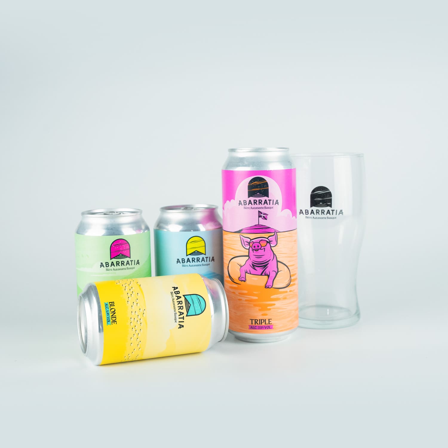 Découvrez la bière Abarratia avec notre pack découverte exclusif, comprenant 4 bières en canettes Abarratia, 1 verre 56cl et 1 sous-bock.