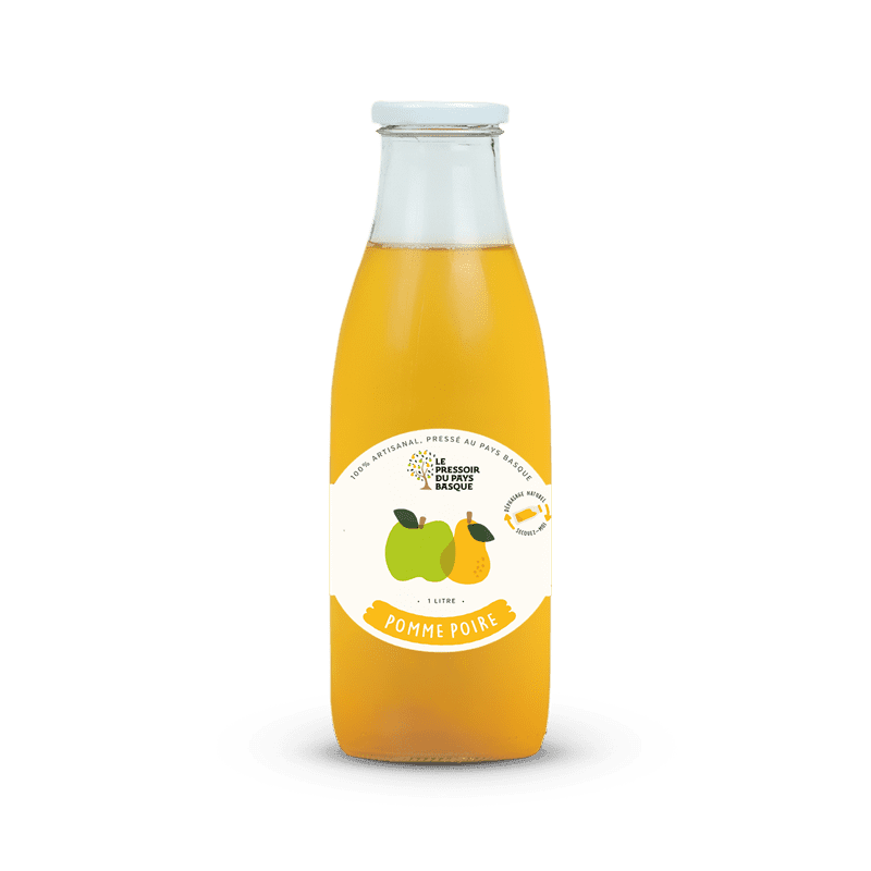 Un délicieux pur jus de pomme et de poire, 100% naturel, sans additifs et sans sucres ajoutés. Découvrez la douceur des pommes et des poires des vergers du Sud-Ouest, pressées et embouteillées artisanalement au Pays Basque à Ayherre.